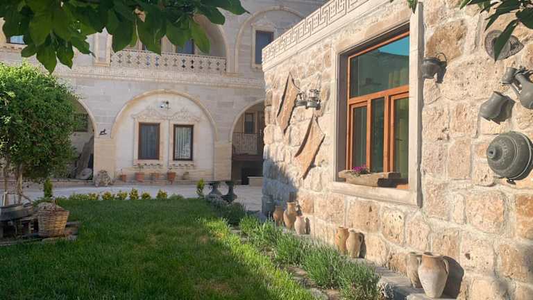 Das Hotel Walnut House in Göreme ist der perfekte Ort, um die Schönheit des Göreme Nationalparks zu erleben. In einem charmanten türkischen Steingebäude untergebracht, bietet das Hotel rustikale Zimmer mit Gewölbedecken und eine freundliche Atmosphäre. Genießen Sie köstliche türkische Spezialitäten im Restaurant oder entspannen Sie auf der Terrasse mit Blick auf den grünen Park. Das Hotel bietet auch eine Reihe von Aktivitäten wie Heißluftballonfahrten, Wanderungen und Reitausflüge. Der Shuttleservice zum Flughafen Kayseri und die Nähe zur Bushaltestelle Göreme Otogarı machen die Anreise zum Hotel bequem und einfach.