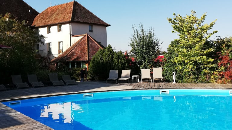Entspannen Sie sich im saisonalen Außenpool des Hotels Hostellerie de la Tour d'Auxois. Genießen Sie die warmen Sonnenstrahlen und erfrischen Sie sich im kühlen Wasser. Im Garten und auf der Terrasse haben Sie die Möglichkeit, sich zu entspannen und die Ruhe der Umgebung zu genießen. Kostenlose Privatparkplätze stehen Ihnen zur Verfügung, um Ihre Fahrzeuge sicher abzustellen.
