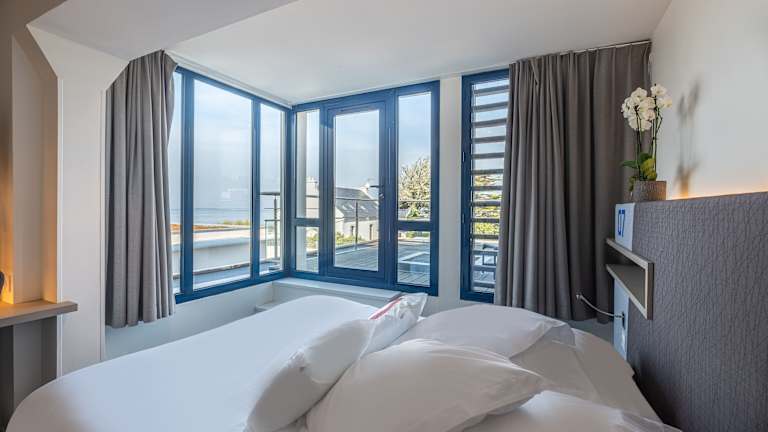 Das Hotel verfügt über 25 helle und geräumige Zimmer, die einen Blick auf das Meer, den Leuchtturm oder die Abtei bieten. Die Zimmer sind komfortabel und mit modernen Annehmlichkeiten ausgestattet. Einige Zimmer verfügen über einen Balkon, auf dem Sie die Aussicht genießen können. Zur Ausstattung gehören ein Safe, eine Minibar, ein Schreibtisch, ein Telefon, Sat-TV und kostenfreies WLAN. Die Badezimmer sind mit einer Dusche oder Badewanne, einem Haartrockner und Bademänteln ausgestattet. Rollstuhlgerechte Zimmer sind ebenfalls verfügbar.