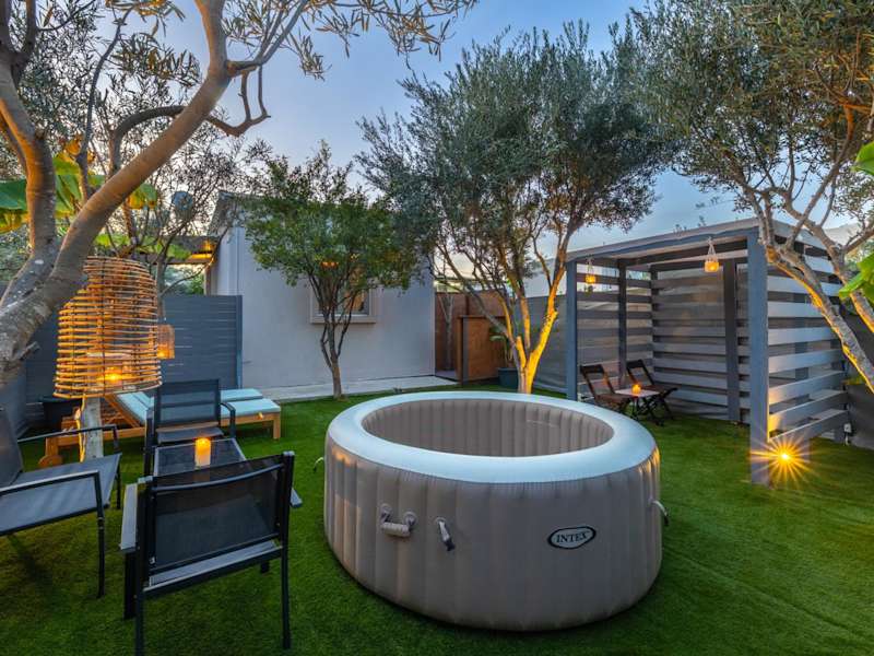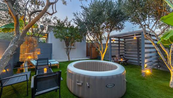 The Home Away from Home with Hot Tub bietet Übernachtungsmöglichkeiten in einem Ferienhaus, das mit kostenlosem WLAN, einer Klimaanlage, einem Garten und einer Terrasse ausgestattet ist. Die Unterkunft verfügt über einen Whirlpool und bietet Gartenblick.