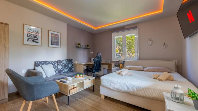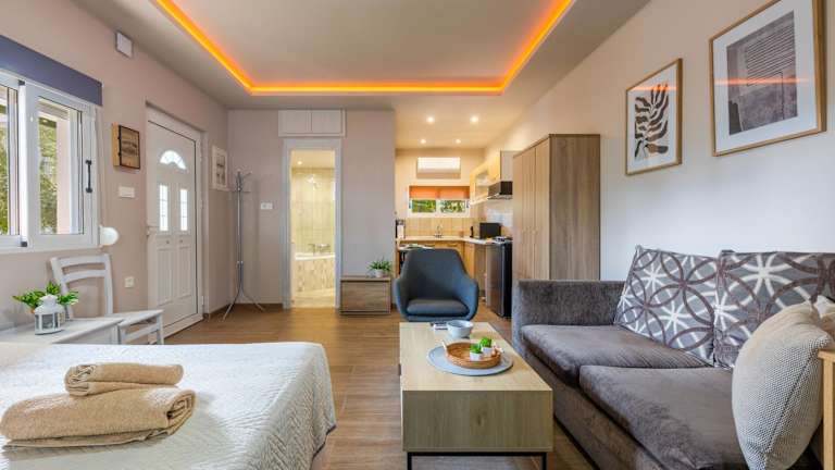 Die Unterkunft befindet sich in Lampi, 400 m vom Strand Lambi und 2,1 km vom Strand Kos-Stadt entfernt. In der Umgebung befinden sich der Hafen Kos (1,6 km) sowie der Baum des Hippocrates (2 km).