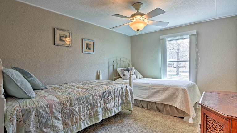 Das 1 Hektar große Grundstück des Grove Home bietet viele Möglichkeiten für sportliche Aktivitäten und Freizeitgestaltung. Nutzen Sie den Whirlpool, um sich zu entspannen und den Stress des Alltags hinter sich zu lassen. Der Grand Lake lädt zum Schwimmen, Angeln und Bootfahren ein. Erkunden Sie die Umgebung und entdecken Sie die Schönheit der Natur. Der Regionalflughafen Joplin bietet auch die Möglichkeit, die Umgebung aus der Vogelperspektive zu erkunden.