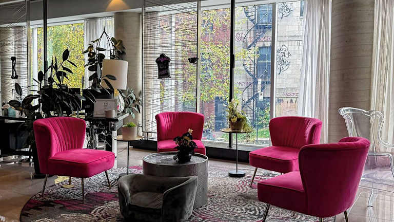 Das Hotel liegt im Stadtzentrum von Montreal, ca. 1,6 km vom Stadtzentrum entfernt. Der Flughafen befindet sich etwa 33 km und der Bahnhof ca. 4 km entfernt. Die Umgebung bietet zahlreiche Annehmlichkeiten und Sehenswürdigkeiten, darunter das Arrondissement Le Plateau-Mont-Royal, welches in zwei Gehminuten erreichbar ist.