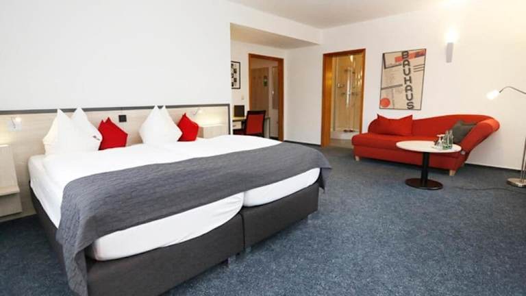 Erkunden Sie die schöne Stadt Dessau bequem mit einem Fahrrad, das Sie im Hotel ausleihen können. Die Umgebung bietet viele Möglichkeiten für Aktivitäten im Freien und kulturelle Entdeckungen. Besuchen Sie das UNESCO-geschützte Bauhausgebäude und die Meisterhäuser, die nur einen kurzen Spaziergang vom Hotel entfernt liegen. Genießen Sie auch einen erholsamen Spaziergang im Georgengarten, der nur 100 m entfernt ist.