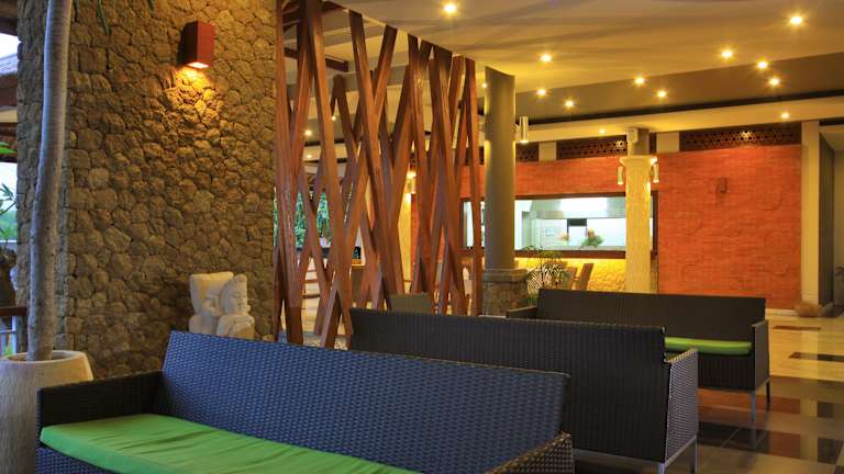 Das Resort verfügt über ein Restaurant, in dem internationale, asiatische und indonesische Spezialitäten serviert werden. Gäste können zwischen verschiedenen Verpflegungsoptionen wählen, darunter Übernachtung mit Frühstück oder Halbpension. Das Frühstück wird als À-la-carte-Buffet angeboten und Mittag- und Abendessen werden in Menüform serviert. Eine Bar und ein Café sind ebenfalls vorhanden.