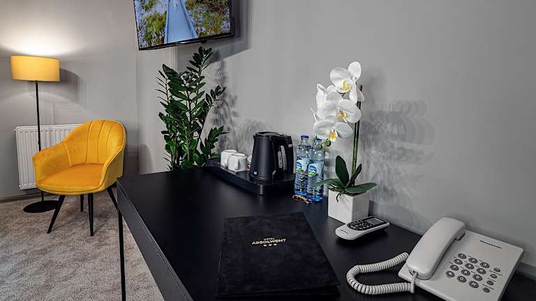 Jedes Zimmer im Hotel Absolwent ist mit einem TV und einem Wasserkocher ausgestattet. Der Essbereich verfügt über einen Esstisch, und das eigene Bad ist mit einer Dusche, einem Haartrockner und kostenfreien Pflegeprodukten ausgestattet. Bettwäsche wird gestellt und alle Türen können mit einem elektronischen Zugangscode geöffnet werden.