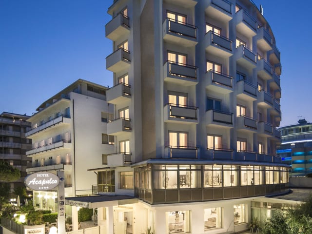 Das Hotel Acapulco in Milano Marittima bietet eine ideale Lage direkt am Strand und beeindruckt mit klimatisierten Zimmern, kostenfreiem WLAN und einem Pool mit Whirlpool. Das Hotel besticht durch seine traditionelle Küche und die Nähe zu Restaurants und Bars. Es ist der perfekte Ausgangspunkt, um die Region zu erkunden und das Strandleben zu genießen.