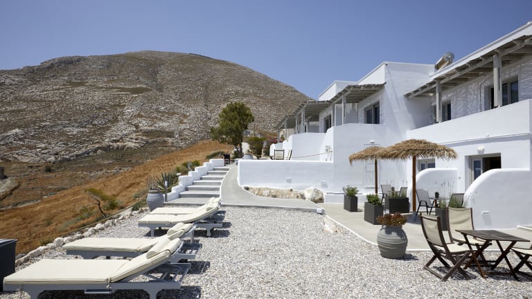 Das Acropole Sunrise Hotel liegt auf einem kleinen Hügel und bietet einen herrlichen Panoramablick auf das Meer und die nahe gelegene Stadt Fira. Der Kieselstrand von Kamari ist nur 15 Gehminuten entfernt. Das Hotel befindet sich in einer idealen Lage, nur wenige Gehminuten vom Zentrum von Kamari und der nächsten Bushaltestelle entfernt. Der gut ausgestattete Strand von Kamari bietet Liegestühle, Sonnenschirme und verschiedene Wassersportmöglichkeiten. Der Flughafen ist nur 4 km entfernt und die Inselhauptstadt Fira erreichen Sie nach 7 km.
