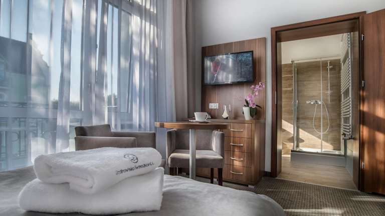Die Zimmer im Hotel Admirał I sind einfach eingerichtet und bieten alles, was Sie für einen angenehmen Aufenthalt benötigen. Jedes Zimmer verfügt über einen Wasserkocher, einen Kühlschrank und einen TV. Das private Badezimmer ist mit einer Dusche ausgestattet. Die Zimmer zeichnen sich durch ihr klassisches Design, Teppichböden und Holzelemente aus, was ihnen einen gemütlichen und einladenden Charakter verleiht.