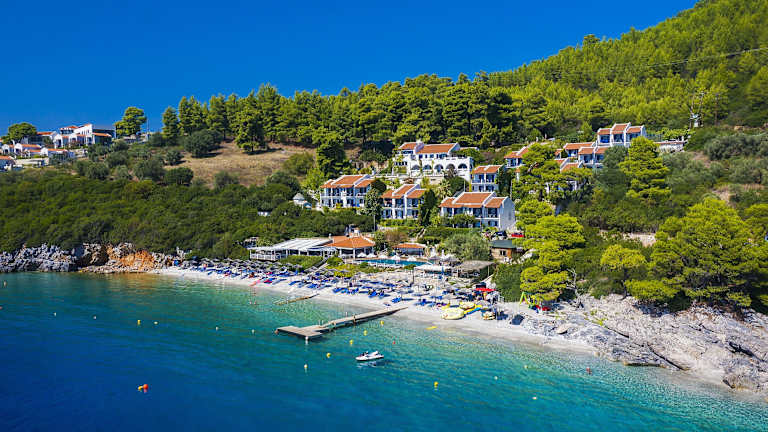 Das Adrina Beach Hotel befindet sich in der Nähe des charmanten Dorfes Panormos auf der Insel Skopelos. Die Unterkunft liegt direkt am Strand Adrina und bietet somit einen idealen Ausgangspunkt für einen entspannten Strandurlaub. In der Umgebung gibt es auch zahlreiche Attraktionen und Sehenswürdigkeiten, die Sie erkunden können. Der Hafen von Skopelos ist nur 12 km entfernt und der Hafen von Glossa erreichen Sie nach 15 km.