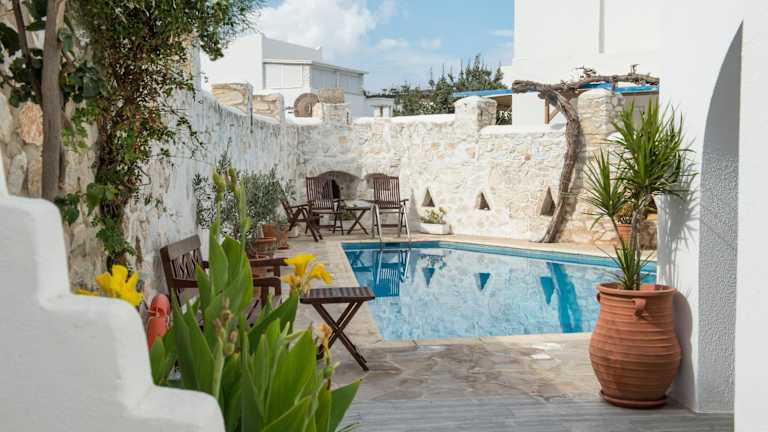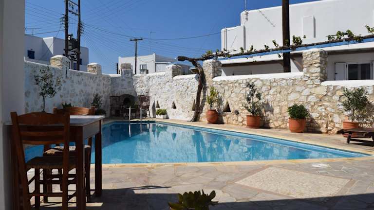 Das Hotel Aegeon in Parikia bietet eine günstige Lage im Herzen der Stadt und ist nur einen kurzen Spaziergang vom Strand und dem Hafen entfernt. Die schlicht eingerichteten Zimmer sind mit Klimaanlage, Balkon oder Terrasse und Sat-TV ausgestattet. Genießen Sie Ihren Aufenthalt am Pool mit Sonnenterrasse oder erkunden Sie die Umgebung mit Hilfe des freundlichen Personals an der Rezeption. Das Hotel Aegeon ist der ideale Ausgangspunkt, um Parikia und die Umgebung von Paros zu erkunden.