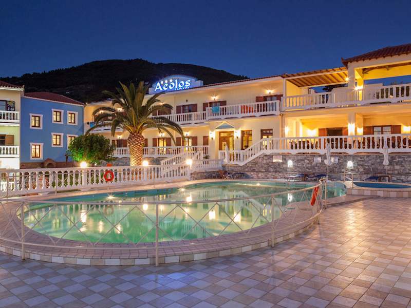 Das Aeolos Hotel verfügt über einen großen Pool, in dem die Gäste schwimmen und sich entspannen können. Auf der Sonnenterrasse stehen Liegestühle und Sonnenschirme zur Verfügung. Für Kinder gibt es einen separaten Pool und einen Spielplatz. Das Hotel organisiert auch gerne Ausflüge und Mietwagen für die Gäste, damit sie die Umgebung erkunden können.
