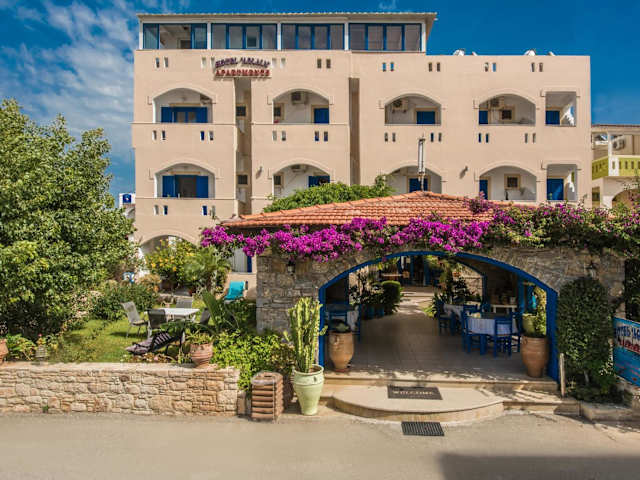 Das Hotel Aglaia bietet eine ideale Lage nur 200 m vom Strand Kalamaki entfernt. Hier können Sie in klimatisierten Unterkünften mit Balkon und kostenfreiem WLAN einen erholsamen Aufenthalt genießen. Die voll ausgestatteten Küchenzeilen in den Unterkünften ermöglichen es Ihnen, Ihre Mahlzeiten selbst zuzubereiten. Das Aparthotel bietet auch eine Autovermietung und einen kostenpflichtigen Flughafentransfer. Erkunden Sie die nahe gelegenen Strände Afratia und Kommos und lassen Sie sich von der Schönheit der Umgebung verzaubern.