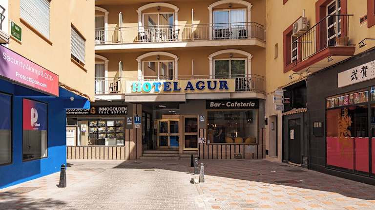 Das Hotel Agur liegt im Zentrum von Fuengirola und nur wenige Schritte vom Strand entfernt. Die Lage bietet eine gute Anbindung an öffentliche Verkehrsmittel, einschließlich Busse und Züge, die es den Gästen ermöglichen, die Umgebung einfach zu erkunden. Der Flughafen Málaga ist ebenfalls gut erreichbar und Marbella sowie der Freizeitpark Tivoli World sind nur eine kurze Autofahrt entfernt.