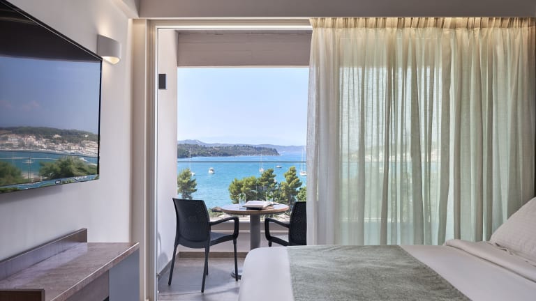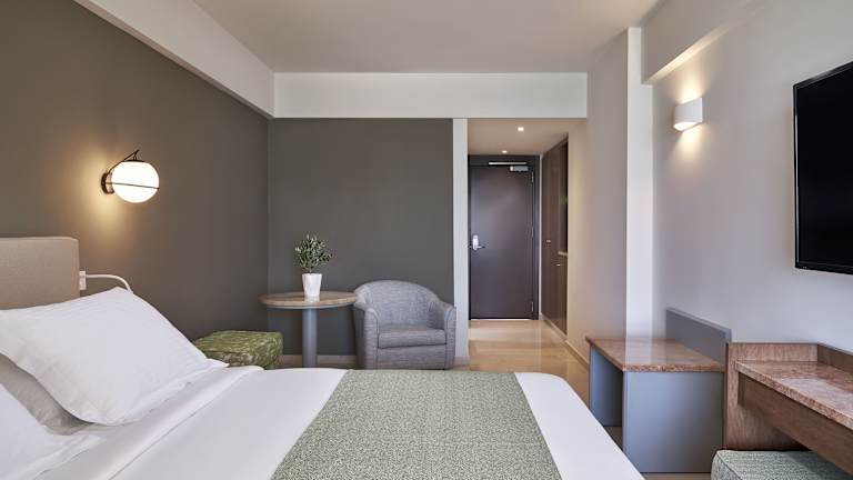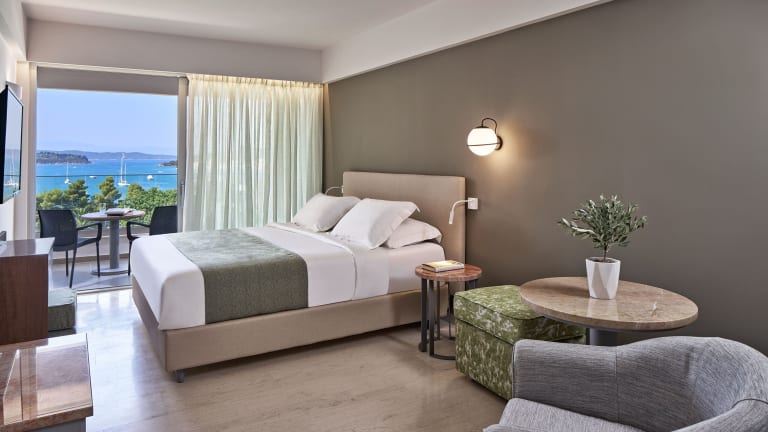 Die Zimmer sind klimatisiert und bieten ein angenehmes Raumklima. Sie verfügen über einen Balkon oder eine Terrasse mit Meerblick, ein Kingsizebett und ein Sofabett sowie separate Schlafzimmer und Zustellbetten auf Anfrage. Weitere Annehmlichkeiten umfassen eine Minibar, einen Kühlschrank, ein Telefon, einen TV mit Satellitenempfang und kostenloses WLAN. Die Bäder sind mit Dusche und Badewanne sowie einem Haartrockner ausgestattet.