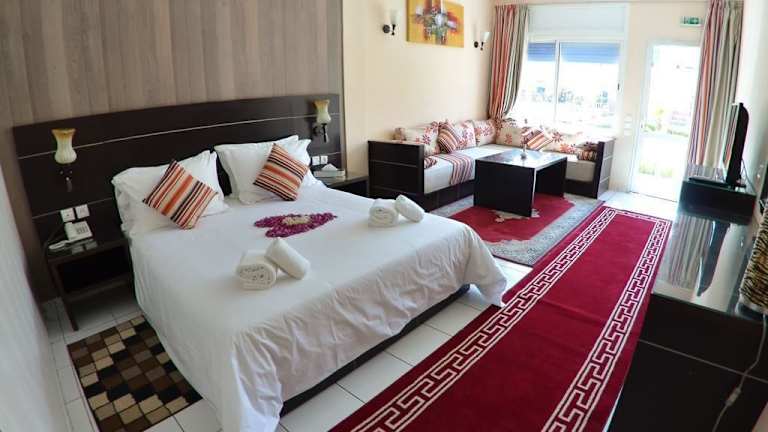 Das Hotel Al Akha in Fès bietet Ihnen einen angenehmen Aufenthalt mit einem Außenpool, einem Fitnesscenter und kostenfreiem WLAN. Die klimatisierten Zimmer verfügen über Balkon oder Terrasse und bieten einen herrlichen Blick auf die Berge und den Pool. Nutzen Sie auch die kostenfreien Parkmöglichkeiten und die Konferenzeinrichtungen des Hotels. Die Lage des Hotels ermöglicht es Ihnen, die Universität al-Qarawīyīn und die Medina von Fès in kurzer Entfernung zu erkunden.