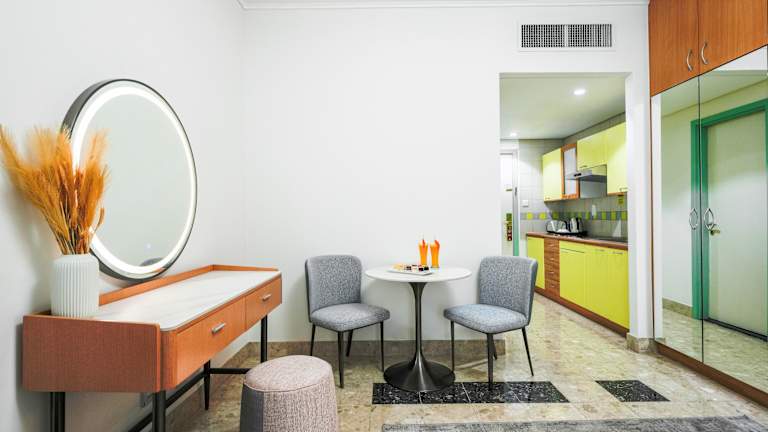 Das Al Bustan Centre & Residence befindet sich im Geschäftsviertel von Dubai, innerhalb des Al Bustan Einkaufskomplexes. Der internationale Flughafen ist etwa 6 km entfernt und das Zentrum von Deira erreichen Sie nach ca. 9 km. Die Metro Station Al Nahda befindet sich in unmittelbarer Nähe und zum Strand sind es etwa 8 km.
