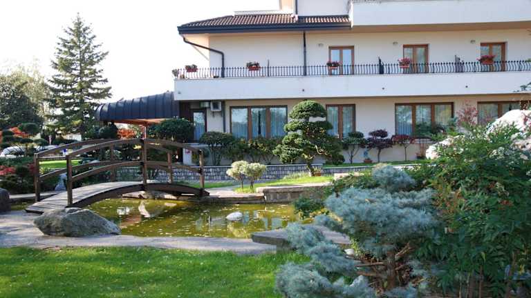 Das Hotel bietet einen großen Garten, in dem Sie entspannen können. Es gibt auch eine Terrasse, auf der Sie bei einem Getränk von der Bar entspannen können. Die Umgebung ist ideal für Wanderungen und Fahrradtouren.