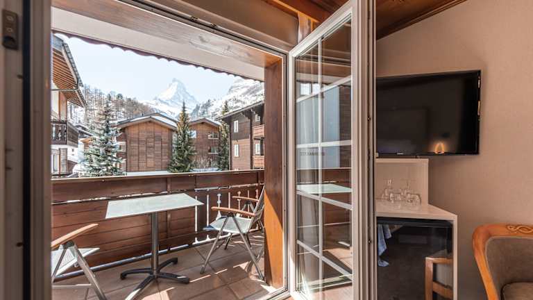 Das Hotel bietet 36 Zimmer, 5 Suiten, 3 Einzelzimmer und 24 Doppelzimmer, die sich auf 4 Etagen verteilen. Jedes Zimmer verfügt über einen Balkon und einige bieten einen atemberaubenden Blick auf das Matterhorn. Die Zimmer sind elegant eingerichtet und verfügen über ein Badezimmer mit allen Annehmlichkeiten wie Bademänteln und Hausschuhen. WLAN ist in den öffentlichen Bereichen kostenlos verfügbar.