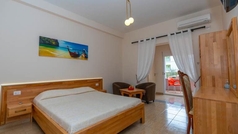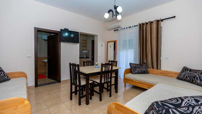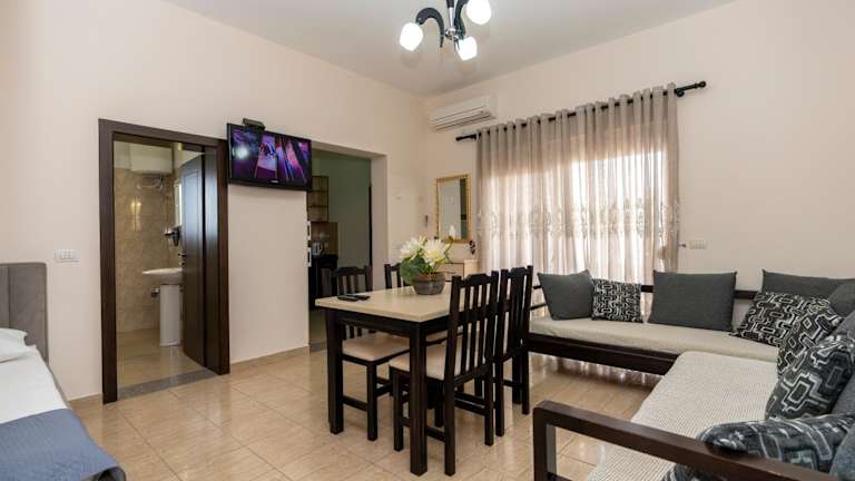 Die klimatisierten Zimmer im Hotel Albania sind komfortabel eingerichtet und verfügen über einen separaten Sitzbereich, einen Flachbild-Sat-TV und eine gut ausgestattete Küche mit einem Essbereich. Jedes Zimmer hat ein eigenes Badezimmer mit kostenfreien Pflegeprodukten, einem Bidet und einer Dusche. Ein Kühlschrank gehört ebenfalls zur Ausstattung.