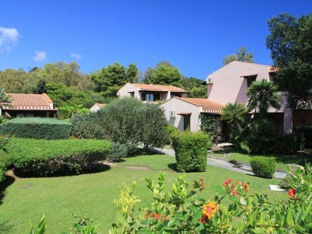 Liegt nur 100-150 m vom langen, weißen Sandstrand der Costa Rei entfernt. Unser Hotel besteht aus 34 Zimmern, die in Form von mehreren Ferienvillen mitten im Grünen in einem großzügigen, gepflegten Garten verteilt sind. Zentral gelegen findet man den Empfangsraum, einen Fernsehraum, eine Bar und eine überdachte Terrasse mit Blick auf den Pool, wo das Frühstück am Buffet angerichtet wird.