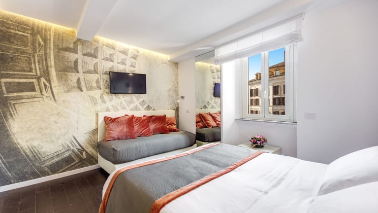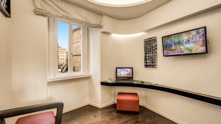 Das Albergo Abruzzi befindet sich an der Piazza della Rotonda im historischen Zentrum von Rom. Von hier aus können Sie die faszinierende Stadt mit ihren zahlreichen Sehenswürdigkeiten bequem zu Fuß erkunden. Das Pantheon liegt nur 20 m entfernt und die Piazza Navona erreichen Sie in nur 5 Gehminuten. Der U-Bahnhof Piazza di Spagna ist ebenfalls zu Fuß in 15 Minuten erreichbar.
