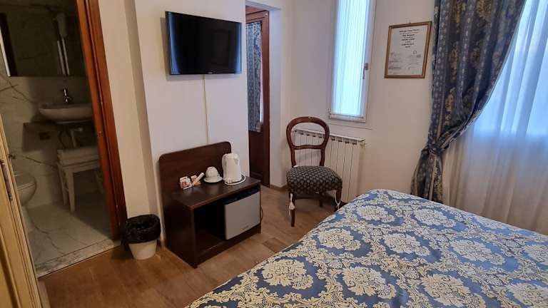 Die Zimmer im Albergo Casa Peron sind schlicht gestaltet und verfügen über Fliesenböden. Einige Zimmer bieten ein eigenes Bad und Klimaanlage, während andere Zugang zu einem Gemeinschaftsbad und Klimaanlage gegen Aufpreis haben. Die Zimmer bieten eine komfortable Unterkunft für Ihren Aufenthalt in Venedig.