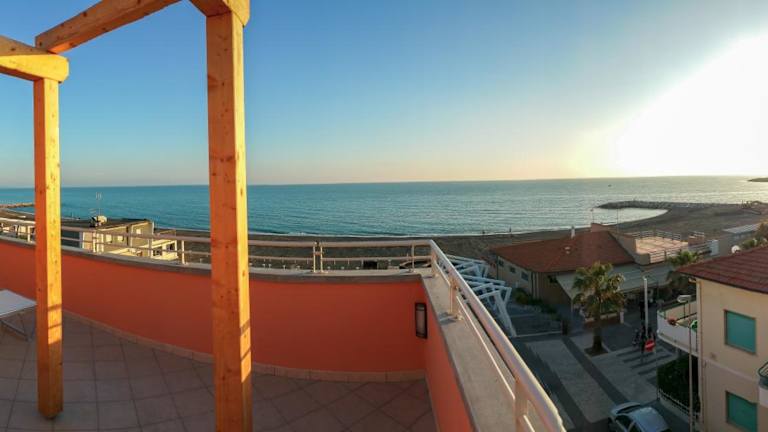 Das Hotel bietet eine Sonnenterrasse mit Blick auf das Meer sowie ein Restaurant. Die Zimmer sind klimatisiert und es steht kostenfreies WLAN zur Verfügung.