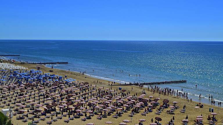 Das Hotel Albergo Ridente liegt in Lido di Jesolo und ist nur 150 m vom eigenen Privatstrand entfernt. Die Umgebung bietet eine Vielzahl von Freizeitmöglichkeiten, darunter Wassersport, Radfahren und Spaziergänge entlang der Strandpromenade. Die Bushaltestelle, die sich nur 20 m vom Hotel entfernt befindet, bietet eine bequeme Anbindung an den Rest der Stadt und den Busbahnhof. Der Flughafen Venedig-Tessera ist ebenfalls gut erreichbar und liegt 30 km entfernt.