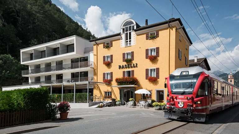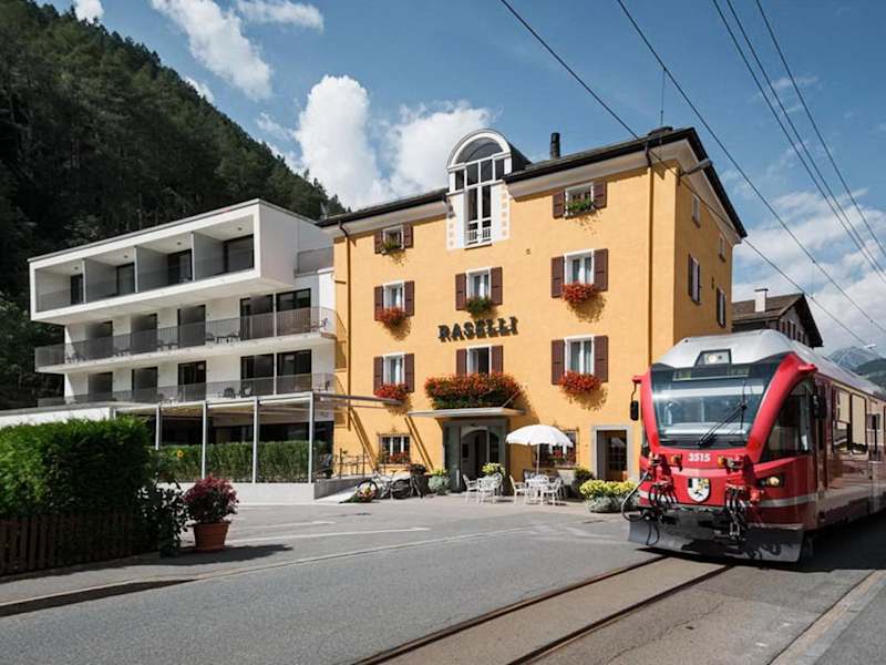 Das Raselli Sport Hotel liegt im Herzen von Le Prese im malerischen Puschlav-Tal. Es befindet sich direkt gegenüber dem Bahnhof Bernina, der zum UNESCO-Weltkulturerbe gehört. Der schöne Lago di Poschiavo ist nur 200 m entfernt. Die Umgebung bietet eine Vielzahl von Aktivitäten wie Wandern, Radfahren und Wassersport.