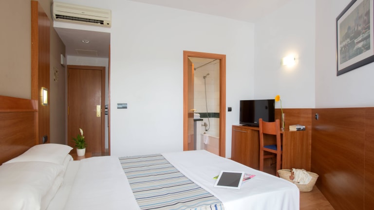 Gemütlich eingerichtete Zimmer mit allen Annehmlichkeiten. Badezimmer mit Marmorfliesen. Haartrockner. Klimaanlage. Parketboden. Telefon mit Direktwahl. TV. Zimmersafe.