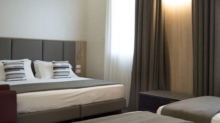 Das Hotel verfügt über 61 Zimmer, die sich auf zwei 3-stöckige Gebäude mit Aufzügen verteilen. Die Zimmer sind im klassischen Stil eingerichtet und bieten allen Komfort, den Sie für einen angenehmen Aufenthalt benötigen. Jedes Zimmer ist klimatisiert und verfügt über kostenloses WLAN, Sat-TV und ein Badezimmer mit Haartrockner.