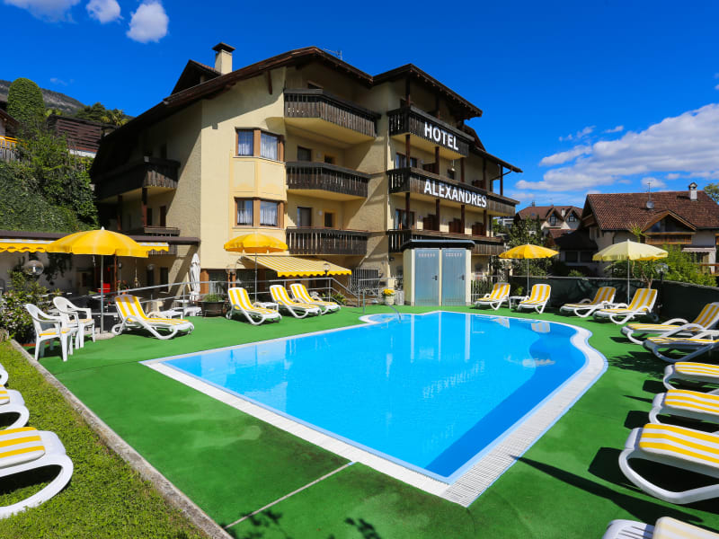 Willkommen in unserem Motorradhotel! Nur 10 km von Südtirols Landeshauptstadt Bozen entfernt erwartet Sie ein entspannender und erlebnisreicher Urlaub zwischen Nord und Süd. Unser Hotel Alexandres in Eppan an der Weinstraße verspricht Erholung nicht nur, sie hält auch, was sie verspricht. Toller Ausgangspunkt für Tagesfahrten: Dolomitenpässe: 30 km, Mendelpass: 10 km, Stilfserjoch 70 km, Fleimstal: 40 km Direkt am Fahrradweg. Bushaltestelle vor dem Haus. Denn im schönen Schwimmbad, auf der sonnigen Liegewiese und in den komfortablen Zimmern (inklusive gratis Internet per WLAN) ist nichts leichter, als sich ganz entspannt zurückzulehnen.