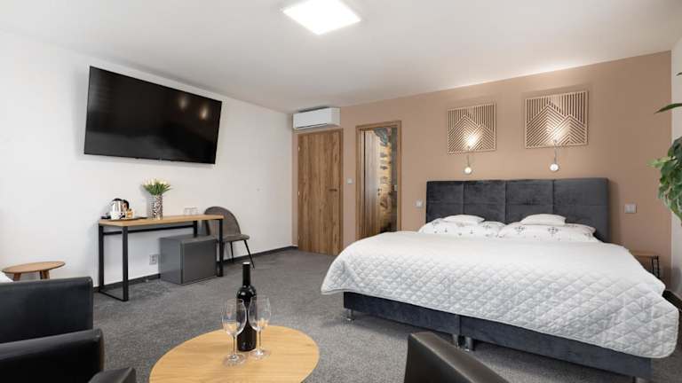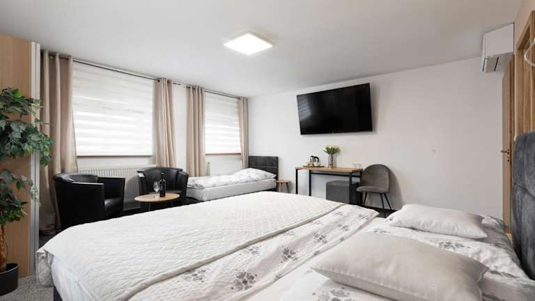 Das Hotel Algar in Opava ist der perfekte Ort für einen angenehmen Aufenthalt. Genießen Sie die Annehmlichkeiten wie das hoteleigene Restaurant und das kostenfreie WLAN im gesamten Gebäude. Kostenlose Privatparkplätze stehen Ihnen ebenfalls zur Verfügung. Die Zimmer bieten einen gemütlichen Sitzbereich und einen Flachbild-TV. Entspannen Sie in der Gemeinschaftslounge oder unternehmen Sie Aktivitäten wie Golfen und Reiten in der Umgebung. Der nächste Flughafen befindet sich etwa 29 km entfernt.