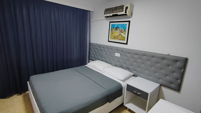 Das Hotel verfügt über 10 Apartments und 20 Doppelzimmer, die sich auf zwei 5-stöckige Gebäude mit Aufzügen verteilen. Die Zimmer sind einfach, aber komfortabel eingerichtet und verfügen über eine Klimaanlage, eine individuell steuerbare Heizung, einen Balkon, ein Doppelbett oder ein Sofabett, einen Safe und WLAN. In der Kochnische gibt es einen Kühlschrank, einen Minikühlschrank und eine Tee-/Kaffeemaschine. Das Badezimmer ist mit einer Dusche, einer Badewanne und einem Haartrockner ausgestattet.