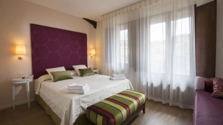 Die Zimmer im Hotel Alma Domus sind klimatisiert und beheizt und bieten Ihnen einen komfortablen Rückzugsort während Ihres Aufenthalts. Jedes Zimmer verfügt über ein eigenes Bad mit Dusche, Bidet und kostenfreien Pflegeprodukten. Einige Zimmer sind mit einem Flachbild-Sat-TV ausgestattet und bieten Ihnen zusätzlichen Komfort. WLAN nutzen Sie in allen Zimmern kostenlos.