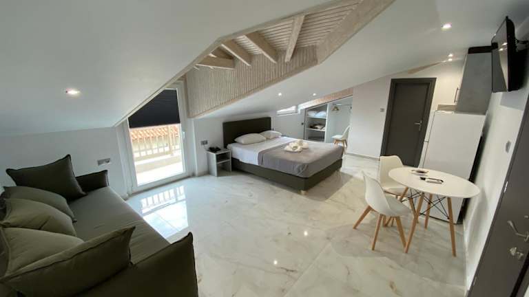 Das Hotel Almira liegt nur 10 m vom Strand Agia Triada entfernt und bietet Ihnen eine ideale Lage, um die griechische Küste zu genießen. Der Strand und das klare Wasser des Golf von Thermaikos sind nur einen kurzen Spaziergang entfernt. In der Umgebung finden Sie auch eine Vielzahl von Fischtavernen, Clubs und Bars, die zu einem Besuch einladen. Der internationale Flughafen Thessaloniki ist nur 12 km und das Stadtzentrum von Thessaloniki 22 km entfernt, so dass Sie leicht auf weitere Attraktionen und Unterhaltungsmöglichkeiten zugreifen können.