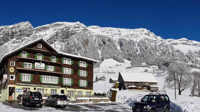 Das Hotel Alpenblick Muotathal ist ein traditionelles Hotel in ruhiger Lage im Muotha-Tal. Es ist der ideale Ausgangspunkt für Outdoor-Aktivitäten wie Kanufahren, Wandern und Motorradtouren. Das Hotel bietet gemütliche Zimmer im Landhausstil, ein regionales Restaurant mit einem schönen Garten und kostenfreies WLAN. Genießen Sie ein reichhaltiges Frühstück und herzhafte regionale Gerichte auf der Terrasse mit Blick auf die malerischen Schweizer Alpen. Die Nähe zum Vierwaldstättersee und der Stadt Schwyz machen dieses Hotel zu einem perfekten Ort für Ihren Aufenthalt. Die Parkplätze stehen Ihnen kostenlos zur Verfügung.