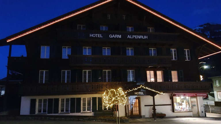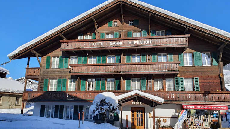 Das Hotel Alpenruh ist die ideale Wahl für einen traditionellen und erholsamen Aufenthalt in Lenk im wunderschönen Simmental. Die schlichten Zimmer mit ihrer hellen Holzeinrichtung bieten Ihnen den nötigen Komfort für eine erholsame Nacht. Genießen Sie das herzhafte Frühstück jeden Morgen, um gestärkt in den Tag zu starten. Die Nähe zu den Skipisten und den malerischen Wander- und Radwegen machen das Hotel Alpenruh zu einem idealen Ausgangspunkt für Outdoor-Aktivitäten. Nutzen Sie die kostenfreien Privatparkplätze und die SIMMENTAL CARD, um die Umgebung bequem zu erkunden.