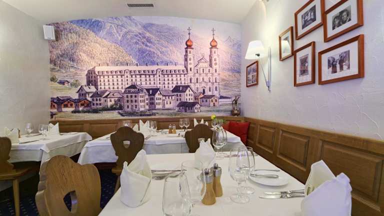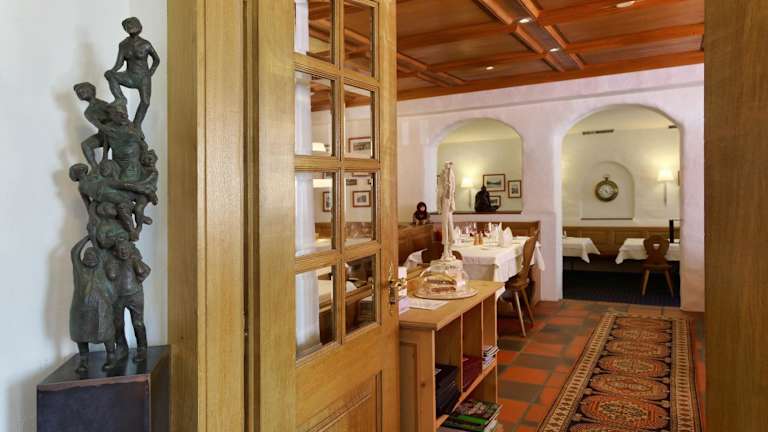 "Das Hotel Alpsu verfügt über ein großes Restaurant mit mehreren, unterschiedlich gestalteten Speisesälen. Hier können Sie die typischen Gerichte aus Grisons genießen, darunter auch die preisgekrönte Zubereitung der lokalen Spezialität ""Capuns"". Das Restaurant bietet eine authentische Atmosphäre und serviert köstliche Gerichte, die Ihre Geschmacksknospen verwöhnen werden."