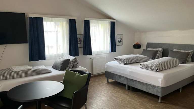 Die Zimmer im Hotel Alpsu sind im alpinen Stil gestaltet und bieten eine gemütliche Atmosphäre. Die Zimmer sind mit Naturholzmöbeln, einem TV, einem Radio und einem Schreibtisch ausgestattet. Die Zimmer bieten alles, was Sie für einen angenehmen Aufenthalt benötigen.