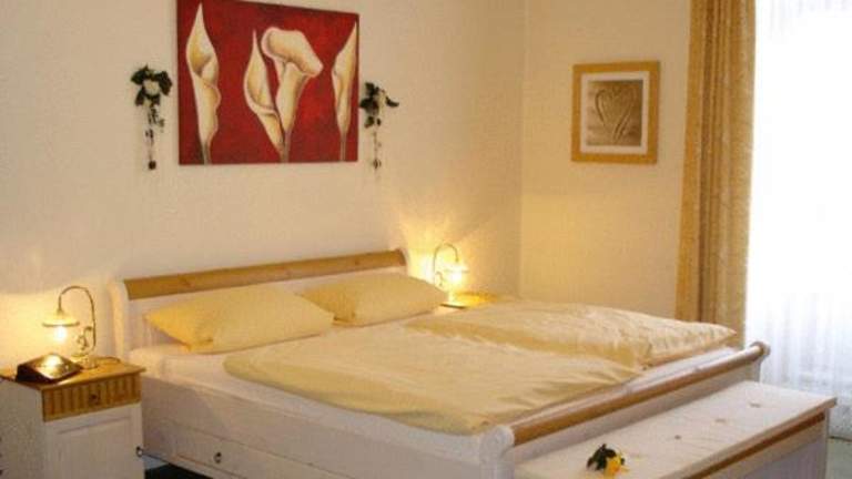 Die Zimmer in der Alten Villa Schlossblick sind hell und stilvoll eingerichtet und verfügen über einen Balkon. Sie bieten modernes Design mit hellen Farben und sind mit Annehmlichkeiten wie Sat-TV und einem Safe ausgestattet. Jedes Zimmer lädt zum Entspannen und Wohlfühlen ein.