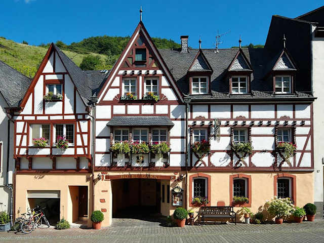 Das Hotel Alter Posthof liegt in Bernkastel-Kues, einem bekannten Weinort im Moseltal. Die ruhige Lage bietet eine entspannte Atmosphäre und ist der ideale Ausgangspunkt für Erkundungstouren in der Region. In nur 3 Gehminuten erreichen Sie zahlreiche Cafés und Restaurants, in denen Sie die lokale Küche genießen können. Die historische Altstadt von Bernkastel-Kues ist nur einen kurzen Spaziergang entfernt und lädt zum Bummeln und Entdecken ein. Die Autobahn A1 ist in 20 Fahrminuten zu erreichen und der Bahnhof Traben-Trarbach liegt 17 km entfernt.