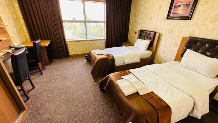 Die Zimmer im Altin Saray Hotel Erbil sind schlicht gestaltet und bieten kostenfreies WLAN. Sie sind klimatisiert und mit kaminroten Möbeln eingerichtet. Zur Ausstattung gehören ein Flachbild-TV, eine Minibar und ein eigenes Badezimmer mit kostenlosen Pflegeprodukten.