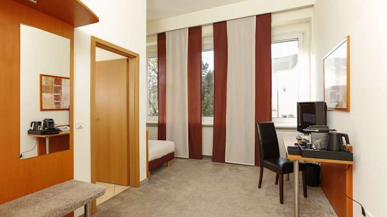 Das Hotel befindet sich in Wesseling und bietet eine hervorragende Verkehrsanbindung. Die Kölner Innenstadt, das Messegelände, Bonn und der Phantasialand-Freizeitpark in Brühl sind gut erreichbar. Die Autobahn A555 ermöglicht eine schnelle Anreise nach Köln und Bonn, während die Straßenbahnhaltestellen in der Nähe des Hotels bequem zu erreichen sind.