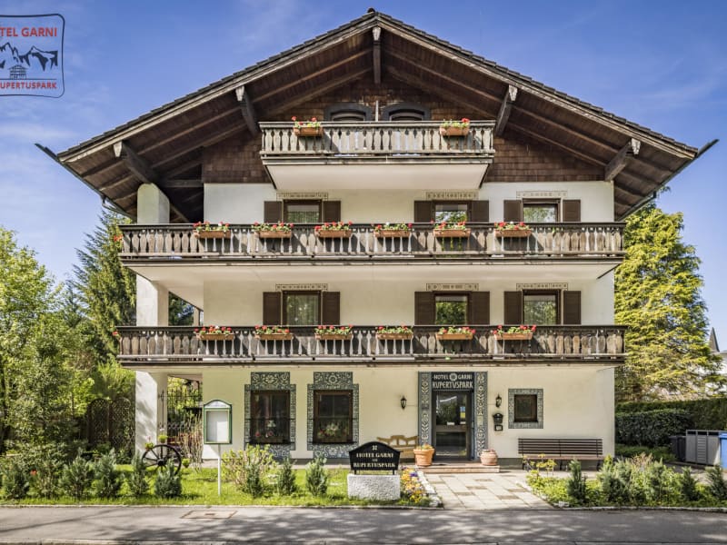 Info: Neue Betreiber seit November 2020, alle Zimmer und der Gästebereich wurden 2021 neu renoviert. Unser Haus ist ein kleines, liebevolles, familiengeführtes Hotel in der wunderschönen Kurstadt Bad Reichenhall im Berchtesgadener Land. Unser Hotel befindet sich in der Kurzone 1 und liegt gegenüber des schönen Rupertuspark. Dort können Sie gemütlich einen Spaziergang machen. Für die sportlichen Gäste bietet der Rupertuspark auch Freiluftgeräte an. Mit nur knapp 50 Metern Entfernung erreichen Sie die wohltuende und schöne Rupertus-Therme mit angrenzendem Familienbad. Gerne können Sie bei uns auch Thermenkarten erwerben. Egal welches Zimmer Sie bei uns buchen, Sie haben immer einen Bergblick, Ruhe und viel grün vor Ihren Augen. Zur Innenstadt und der Shoppingmeile laufen Sie nur ca. 10 Minuten. Das zauberhafte Park-Kino, Cafes, Restaurants oder das Casino sind alle sehr gut fußläufig zu erreichen. Sollten Sie mit dem Auto anreisen, stehen Ihnen kostenlose private Parkplätze zu Verfügung. Gerne können Sie auch mit Ihrem Wohnmobil zu uns anreisen, denn nur 150 m entfernt stehen Ihnen Parkplätze zu Verfügung. Für die kleinen Gäste unter uns, gibt es bei der Anreise ein kleines Willkommensgeschenk. Ein Spielplatz, Skatepark, Beachvolleyball, Fuß-und Streetballplätze liegen nur 200m von unserem Haus entfernt. Zustellbetten (gegen Gebühr) und Babybetten (kostenlos) können gerne bei uns zusätzlich gebucht werden. Für weitere Aktivitäten wie Wandern, ein Theater-Besuch, die Predigtstuhlbahn, die alte Saline uvm. stehen wir Ihnen mit Beratung und Empfehlungen stets zur Seite. Da man bekanntlich nur mit gefüllten Magen Spaß haben kann, bekommen Sie bei uns ein zauberhaftes Frühstück mit regionalen Produkten aus dem Berchtesgadener Land mit fantastischem Kaffee :-) Sollten Sie Abends noch etwas Hunger verspüren, können Sie gerne bei uns eine Brotzeitplatte bestellen. Getränke und Snacks stellen wir Ihnen (gegen Gebühr) für einen gemütlichen Fernsehabend auch zur Verfügung. In den Sommermonaten, wird jeden Samstagabend auf unserer schönen Terrasse im Garten bei uns gegrillt (gegen Gebühr). Uns liegt besonders am Herzen, dass Sie sich wohlfühlen und wir werden uns viel Mühe geben, Ihnen einen schönen Aufenthalt/Urlaub zu bescheren. Ihre Familie Hauber und Familie Hruby vom Hotel am Rupertuspark