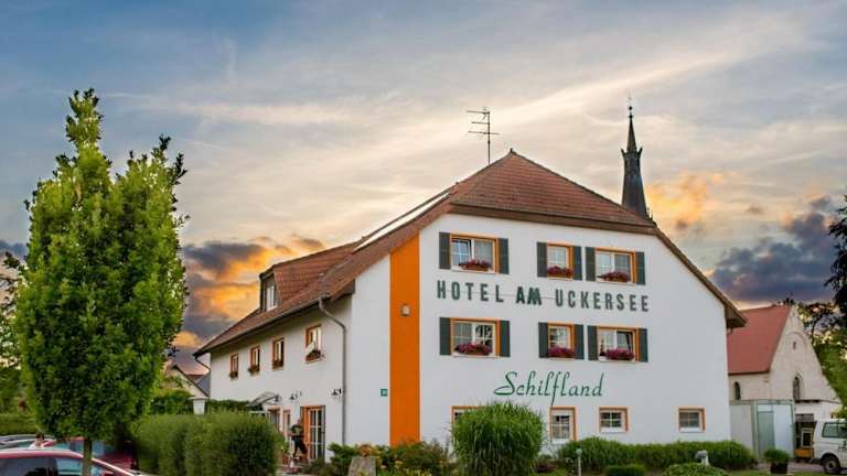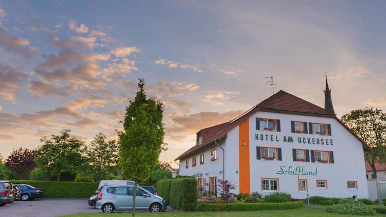 Das Hotel am Uckersee befindet sich in einer malerischen Lage, nur 300 m vom Ufer des Uckersees entfernt. Die umliegende Landschaft Brandenburgs ist geprägt von sanften Hügeln, grünen Wäldern und klaren Seen und bietet ideale Bedingungen für Outdoor-Aktivitäten wie Wandern und Radfahren. Der Uckersee selbst ist ein beliebtes Ausflugsziel und lädt mit seinen 2 Badestränden zum Entspannen und Schwimmen ein. Die Stadt Prenzlau ist nur 3 km entfernt und bietet weitere kulturelle und gastronomische Möglichkeiten. Die Autobahn A11 verbindet das Hotel am Uckersee in nur 100 km Entfernung mit der deutschen Hauptstadt Berlin.