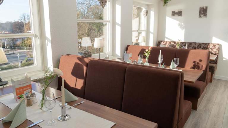 Ein köstliches Frühstück erwartet Sie jeden Morgen im Hotel am Wasserschloss Glücksburg. Das Hotelrestaurant bietet eine Auswahl an regionalen Spezialitäten, die Sie auf der Terrasse oder in gemütlicher Atmosphäre im Innenbereich genießen können. Die Bar lädt zum Entspannen bei einem Getränk ein.