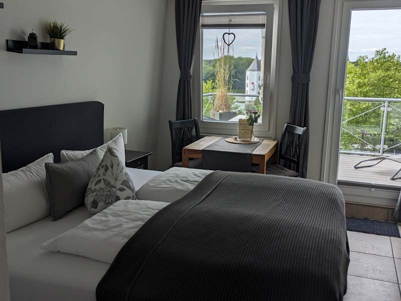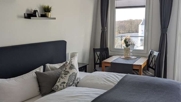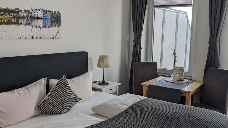 Die Zimmer im Hotel am Wasserschloss Glücksburg sind im mediterranen Stil gestaltet und bieten einen komfortablen Aufenthalt. Jedes Zimmer verfügt über einen TV und ein eigenes Bad, einige Zimmer haben auch einen Balkon. Kostenfreies WLAN steht im gesamten Hotel zur Verfügung.