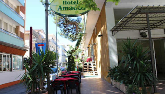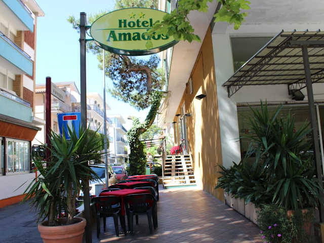 Das Hotel Amados befindet sich in idealer Lage, nur 300 m vom Strand Bradipo entfernt. In der Nähe befinden sich auch die beliebten Strände Miramare, Libera und Fiabilandia. Der internationale Flughafen Rimini ist nur 2 km entfernt, so dass die Anreise zum Hotel sehr bequem ist.